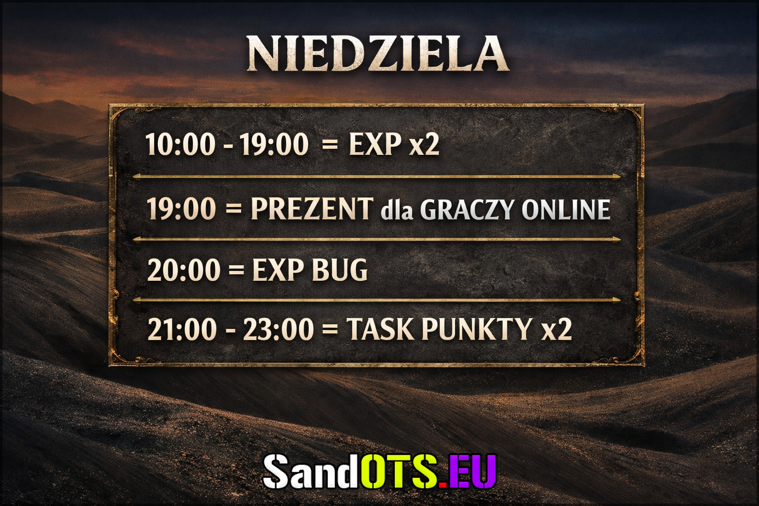 Wracamy do Was z rekompensatą za wczorajsze lagi na Czarne Piaski OTS, oto plan na niedzielę załączony na infografice, do zobaczenia! ![]() |